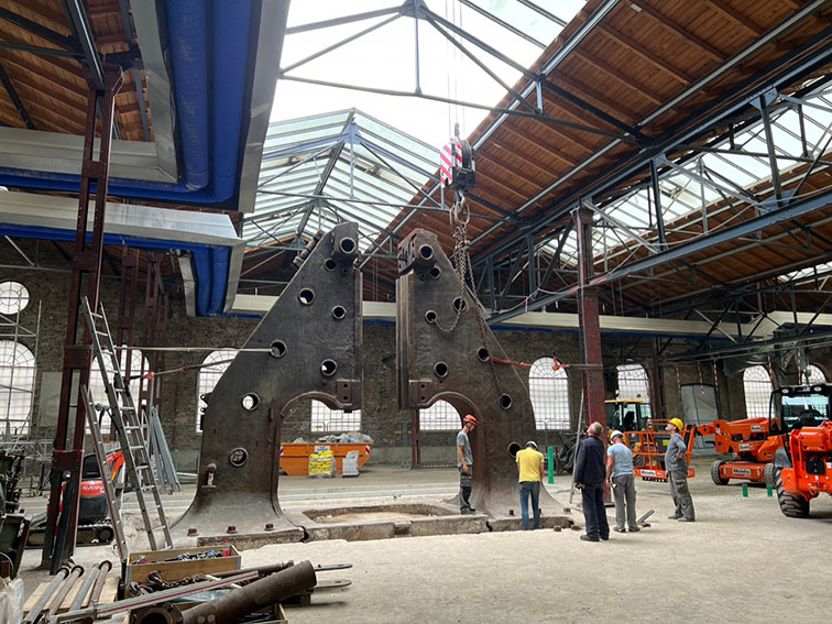 Zeitgleich werden noch einige Großobjekte der Ausstellung vorsichtig von Spezialisten zerlegt und am neuen Ort wieder aufgebaut.