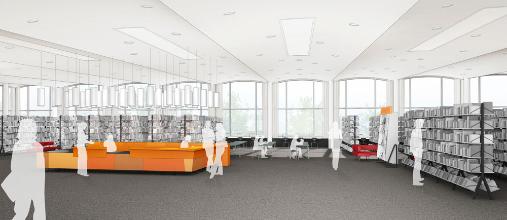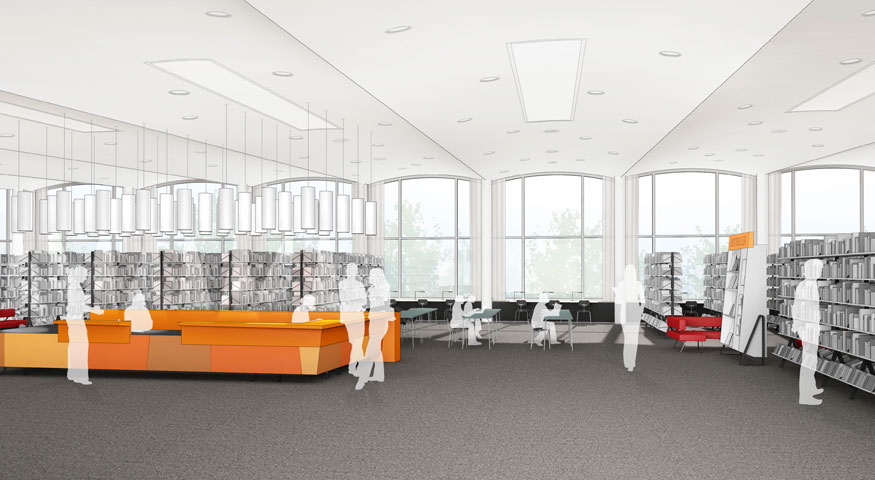 aus der Auslobung: "Ziel der Maßnahme ist die Planung und Umsetzung eines differenzierten Innenraumkonzepts, das zu einer Verbesserung der räumlichen Qualitäten und Funktionen beiträgt, die verschiedenen Nutzerbedürfnisse nebeneinander konfliktfrei umsetzt, die Infrastrukturen für zeitgemäßes, innovatives Lernen und Arbeiten bereitstellt und das denkmalgeschützte Gebäude als historischen Bibliotheksraum teilweise wieder erlebbar macht. "